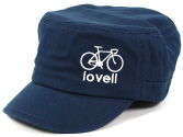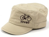 しっかりしたツイル生地のワークキャップです。前左側には自転車の刺繍、右側にはブランドのワッペンがつき後頭部はゴムになっているので、幅広い頭囲サイズに対応。