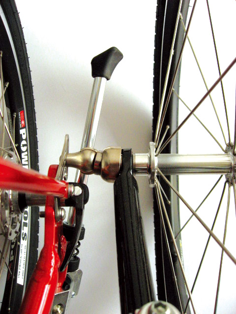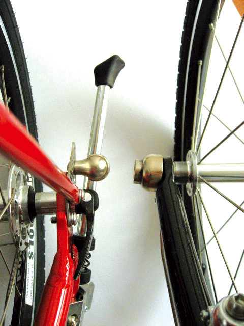 前輪QR調整ねじ部と、リアエンド部に取り付けます。折りたたみ時に前輪、後輪が固定できます。